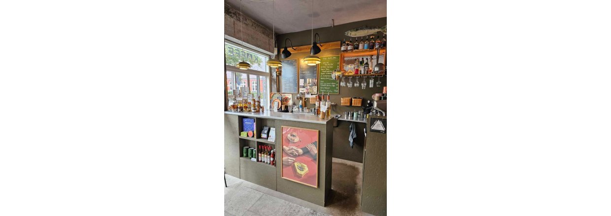I butikken har Mathildes mand Peter åbnet Kaffebaren "KAFFEBANKEN", hvor han serverer god kaffe og sælger specialiteter fra bla. Fanø. I Kaffebanken kan du sammen med kaffen få croissanter og cookies, og også nyde et glas vin eller en lokal øl. Tag en kop kaffe med på vejen ud af to-go lugen eller kom ind i den lille hyggelige cafe, sid ned og betragt livet I Nordby fra en vinduesplads. Du kan også kigge forbi til en lille fredags drink eller to.